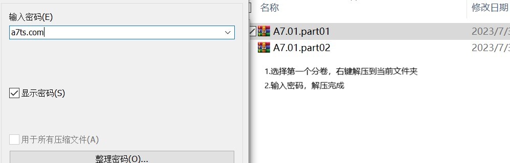 - 安卓手机使用ZArchiver Pro(提示密码错误或者文件损坏,把分卷后缀改成7z或者zip试一下,一定要pro版本,否则会有五花八门的错误.)